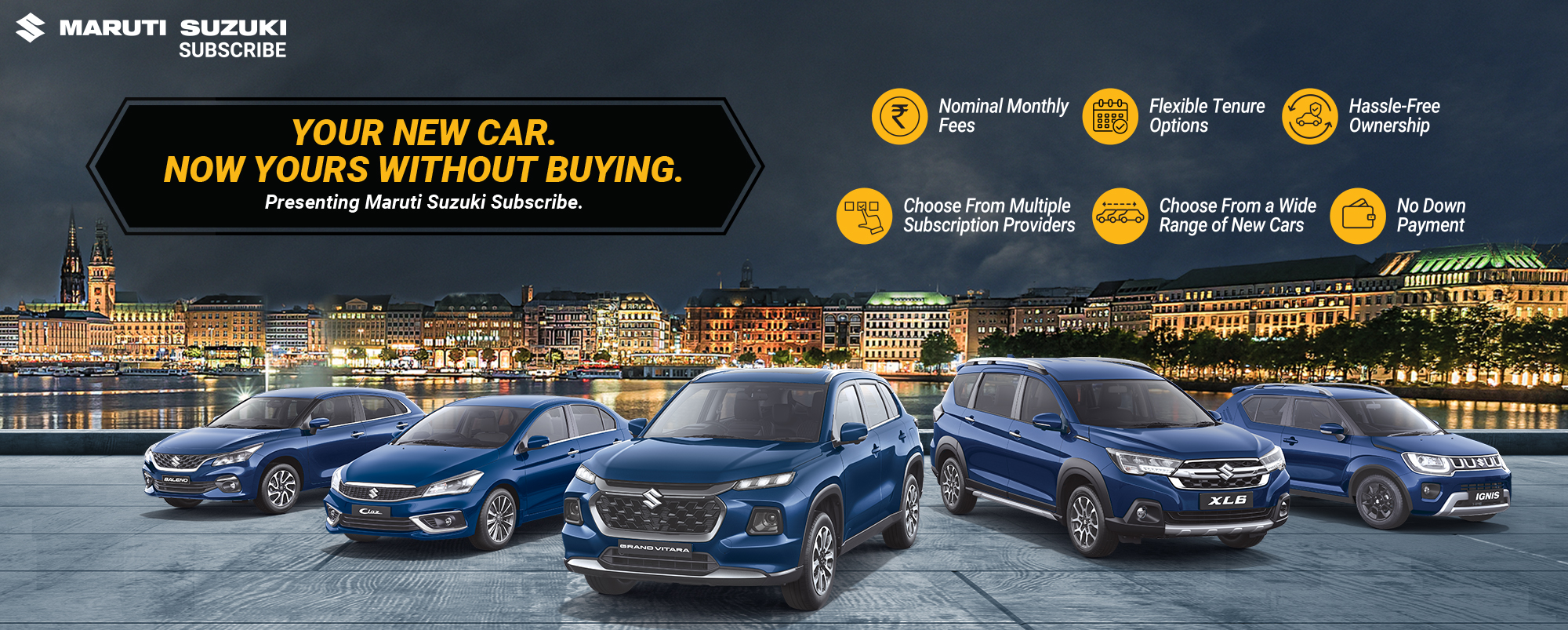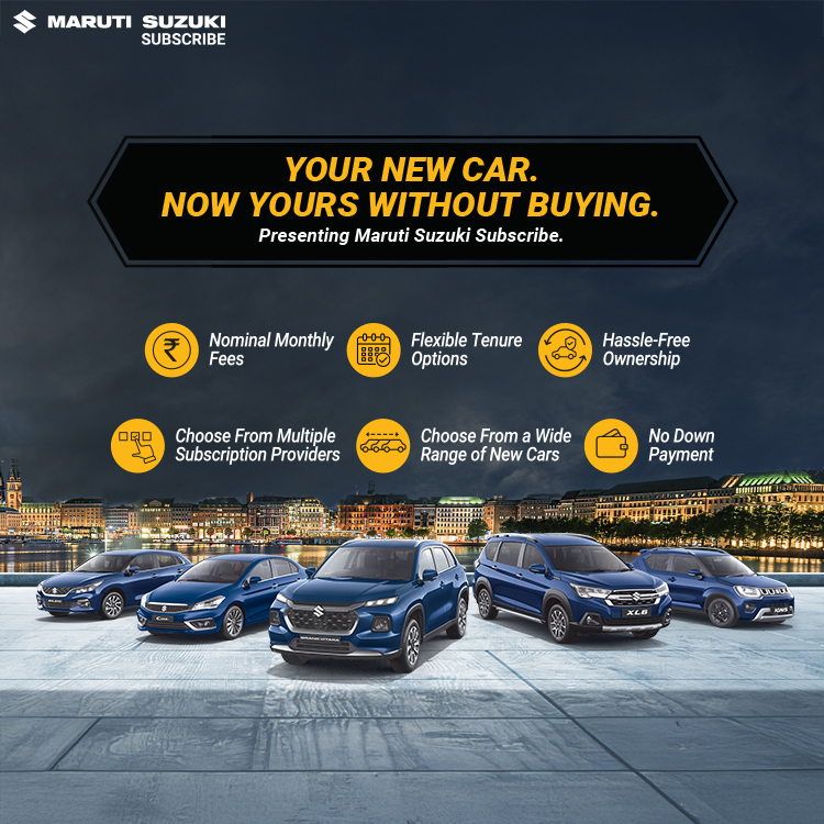 Maruti Suzuki Subscribe enables all customers to enjoy driving their preferred Maruti Suzuki cars without having to deal with all the financial responsibilities that come with owning a car.All you need to do is opt for a monthly subscription plan at a fixed monthly fee, which includes the routine maintenance and insurance costs, and choose a flexible tenure. At Surakshaa in, Bangarpet, Bengaluru, all Hatchback, Sedan, SUV, the MUV models line-up includes Baleno, Invicto, EVitara, Jimny, Ciaz, Ignis, Fronx, Grand Vitara, XL6. Here, you will enjoy Maruti Suzuki Subscribe benefits such as: